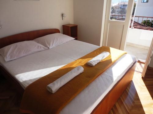 Apartman 104 je namijenjen za 4 osobe i nalazi se na prvom katu. Sastoji se od predsoblja, kupatila, kuhinje sa blagovaonom, 2 spavaće sobe i dva balkona.